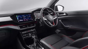 Old Taigun: इसमें 'wild cherry red' काफी मशूर था| अंदर की तरफ डैश्बोर्ड पर सख्त प्लास्टिक का इस्तेमाल ज्यादा था|